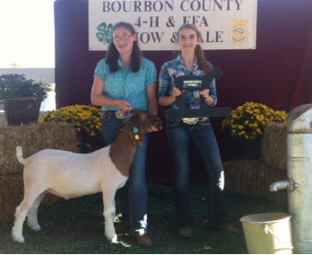 Emma Maynard showed the Grand Champion Market Goat at the 2013 Bourbon County, Kentucky Show and Sale. Her goat was fed Hunter Goat Pellets.