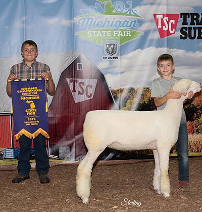 Champion Doreset Ewe at the 2019 Michigan State Fair, shown by the Kesslers.