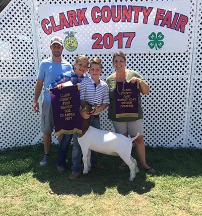 Market Goat Division Champ, Market Doe Champion at the 2017 Clark County, Indiana Fair, shown by Kyle Larson.